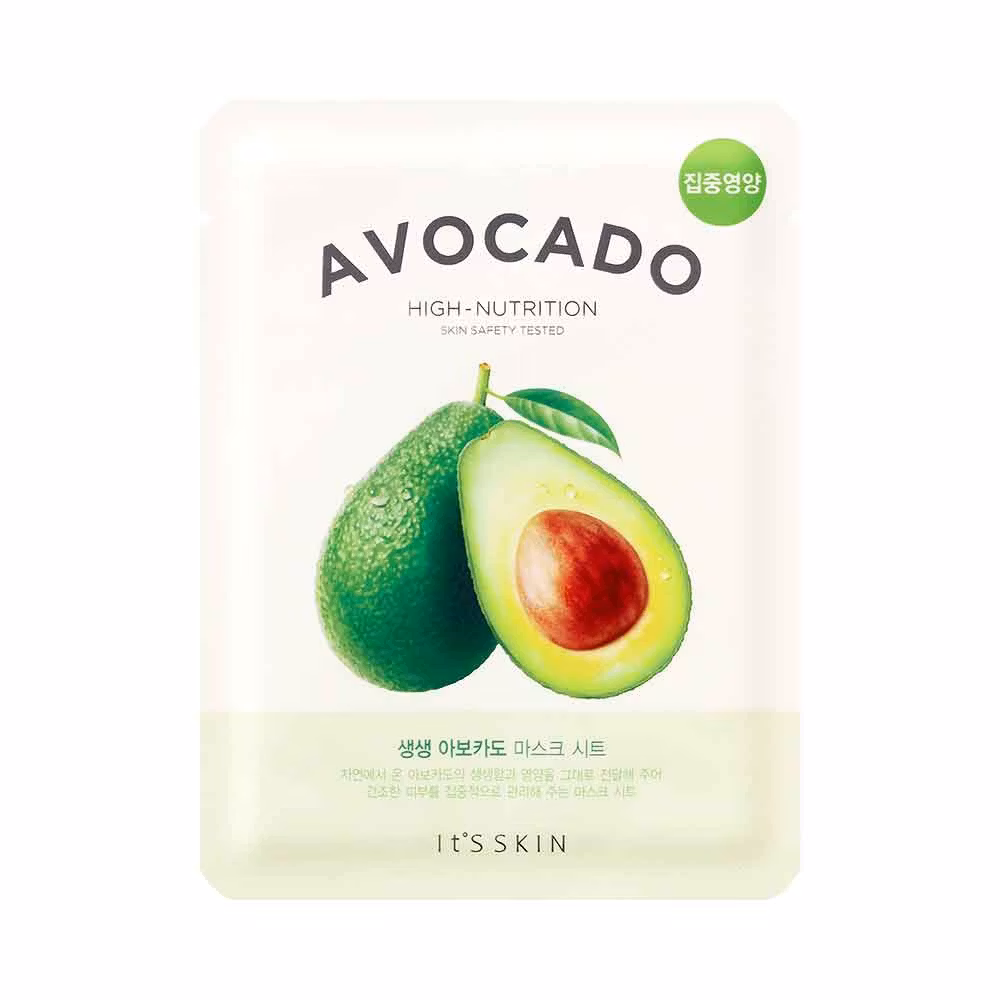 ITS SKIN Avocado Sheet Mask är en näringsrik ansiktsmask som är perfekt för dig med torr eller irriterad hud. Berikad med avokadoolja som är naturligt rik på vitaminer, fettsyror, proteiner och aminosyror – masken stärker hudens elasticitet och återställer dess fuktbalans.