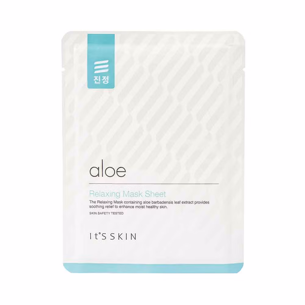 AnsiktsmaskITS SKIN Aloe Relaxing Sheet Mask med Aloe Vera, lindrar torr och flagnad hud. Verkar lugnande och återfuktande. Stimulerar blodcirkulationen och gör huden mjuk och elastisk, återställer hudens naturliga lyster. Innehåller inte parabener. Dermatologiskt testad.