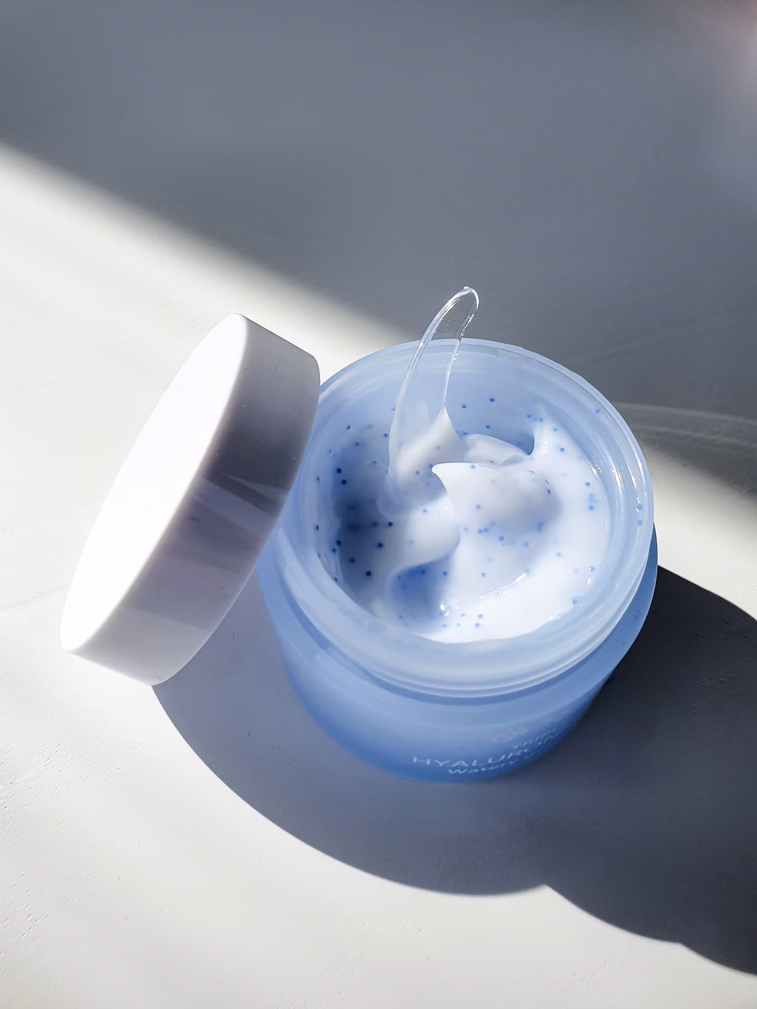 Blå pärlor frigör koncentrerad återfuktning vid kontakt med huden